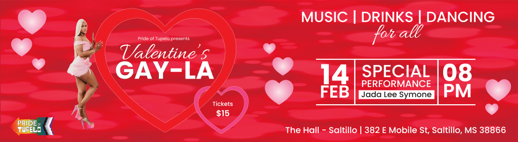 Who’s ready to dance the night away?! Celebrate Valentine’s Day dancing along with the DJ in an inclusive space. Enjoy a special performance from Miss Pride of Tupelo Jada Lee Symone. Cocktails and mocktails will be available for purchase.
